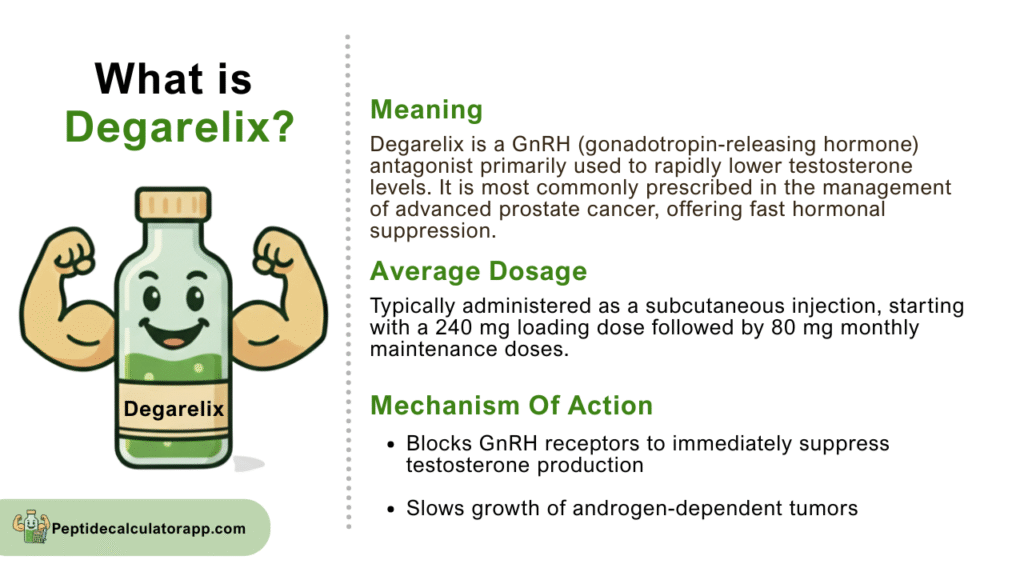 Degarelix represents a significant advancement in prostate cancer treatment, offering rapid and sustained testosterone suppression without the complications of initial hormone surge. Its unique mechanism of action and favorable safety profile make it an excellent option for many patients with advanced prostate cancer.