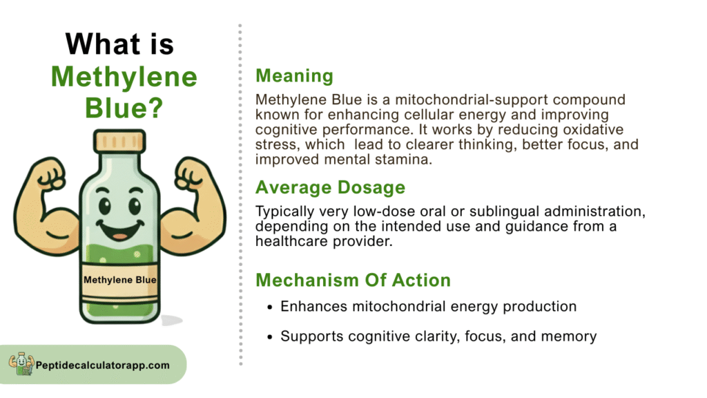 Research indicates that Methylene Blue may enhance memory, improve learning capacity, and help slow age-related cognitive decline. These benefits are linked to its ability to support mitochondrial energy production within brain cells and its influence on key neurotransmitter pathways.