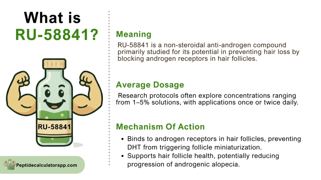 RU-58841 is a synthetic anti-androgen compound specifically designed for topical application in treating hair loss. Developed initially by Roussel Uclaf, this experimental drug is formulated as a 5% topical solution that targets androgen receptors directly at the hair follicle level. Unlike systemic treatments that affect the entire body, RU-58841 (5% topical) works locally, making it an attractive option for those seeking targeted hair loss intervention.