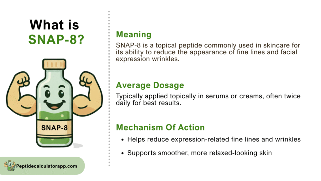 Snap-8 easily integrates with other skincare ingredients, enhancing the effectiveness of comprehensive regimens. It works well alongside retinoids, vitamin C, hyaluronic acid, and other peptides. Unlike regenerative peptides such as BPC-157, which target healing and internal repair, Snap-8 focuses specifically on cosmetic improvement, making it ideal for individuals seeking targeted anti-aging benefits.